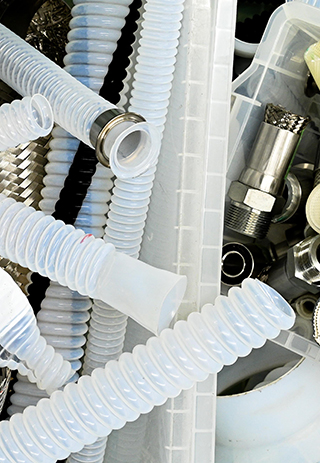 私たちULTIVATEは、主にフッ素樹脂を用いたプラント向け配管ソリューションを扱う組織として、国内では数少ない、ほぼすべての工程を担える研究開発型の製造メーカー。自社の工場で行われる各種ホースやフレキシブルジョイントの成型や加工はもちろん、あらゆる現場で生じる問題や課題の原因究明・調査分析といったコンサルティング領域、また組み込んだ後のアフターフォローや定期診断までを、ワンストップで行います。